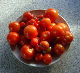 Katrine tomater - og kartoffelspandene er kommet ud. Peberen er